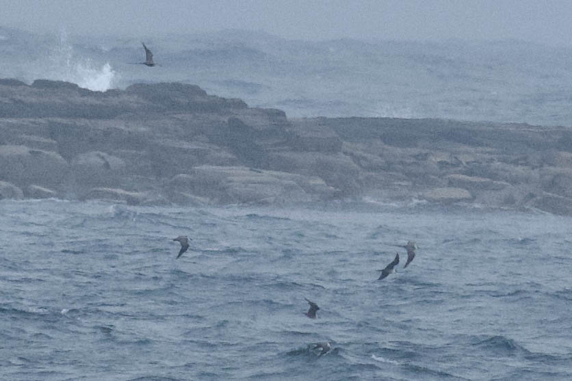 Lewis: 2 Pomarine Skuas flew past the Butt of Lewis.
